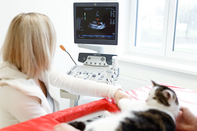 Mit dem Ultraschall werden die Weichteile des Körpers untersucht, wobei keine Strahlenbelastung für das Tier entsteht. Ist es in der Humanmedizin schon seit langem ein nicht mehr wegzudenkendes Diagnosemittel, erlangt es auch in der Veterinärmedizin immer größere Bedeutung. Vor allem Tumorerkrankungen können dadurch vorzeitig diagnostiziert werden.